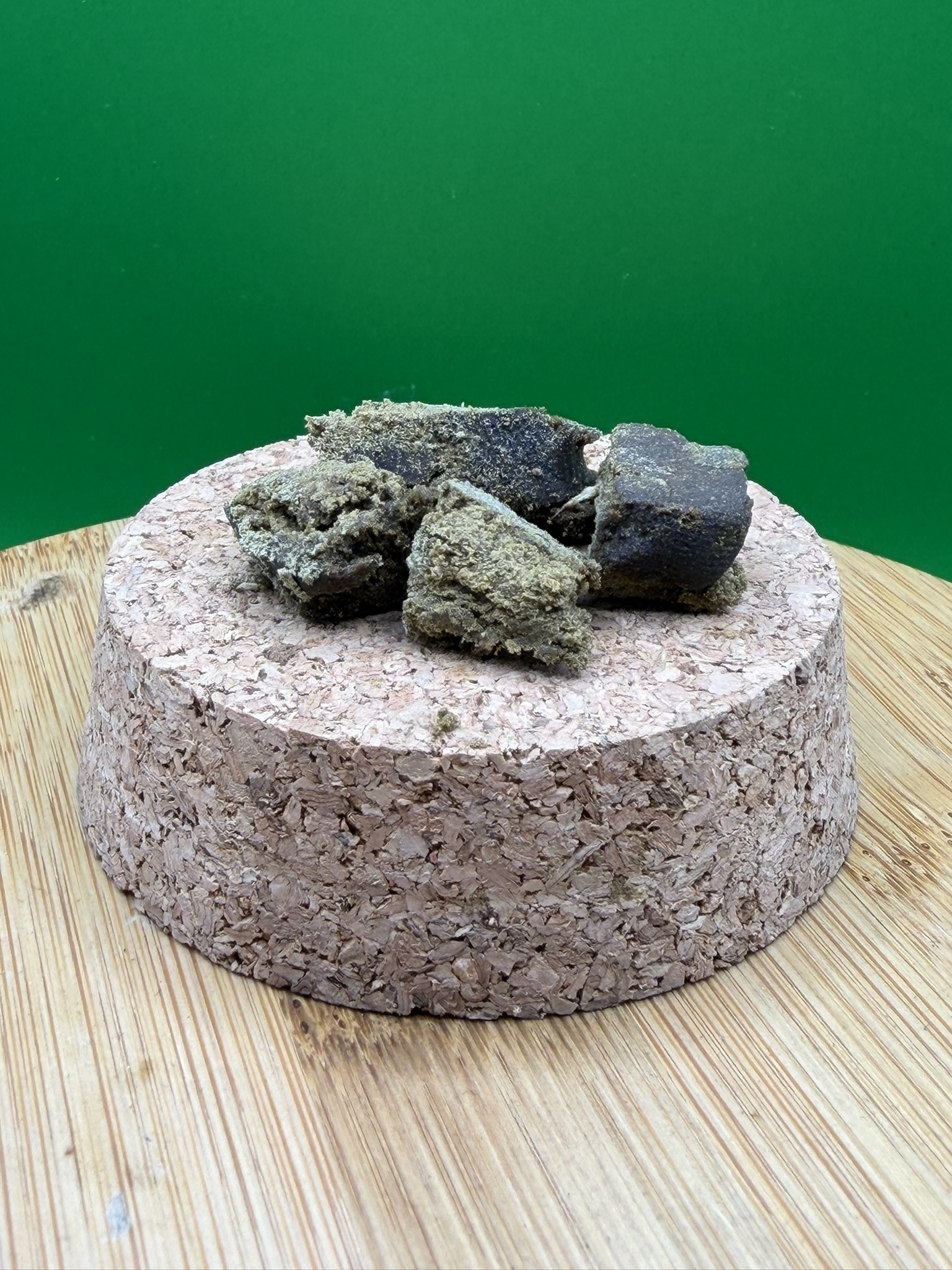 La résine Diamond OG Dry Sift THV2 se présente sous une forme compressée de couleur sable doré, issue d’un tamisage à sec ultra-fin. Sa texture sablonneuse et cristalline s’effrite avec une grande facilité, libérant une multitude de trichomes concentrés. Elle dégage un parfum boisé et citronné, typique de la lignée OG, avec des notes de terre fraîche. Enrichie au complexe THV2, elle procure une sensation de détente absolue et une relaxation corporelle de haute intensité.